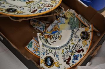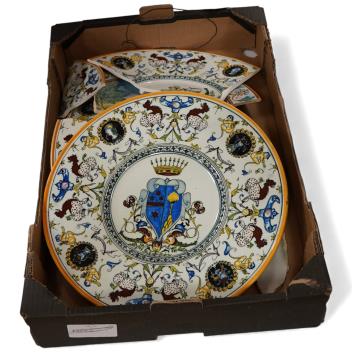 Lot 1283 , A late 19th century / early 20th century maiolica charger decorated with a crest, 36cm in diameter