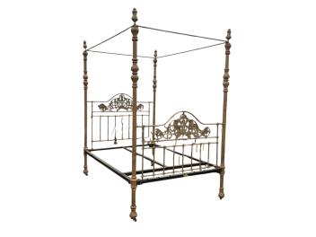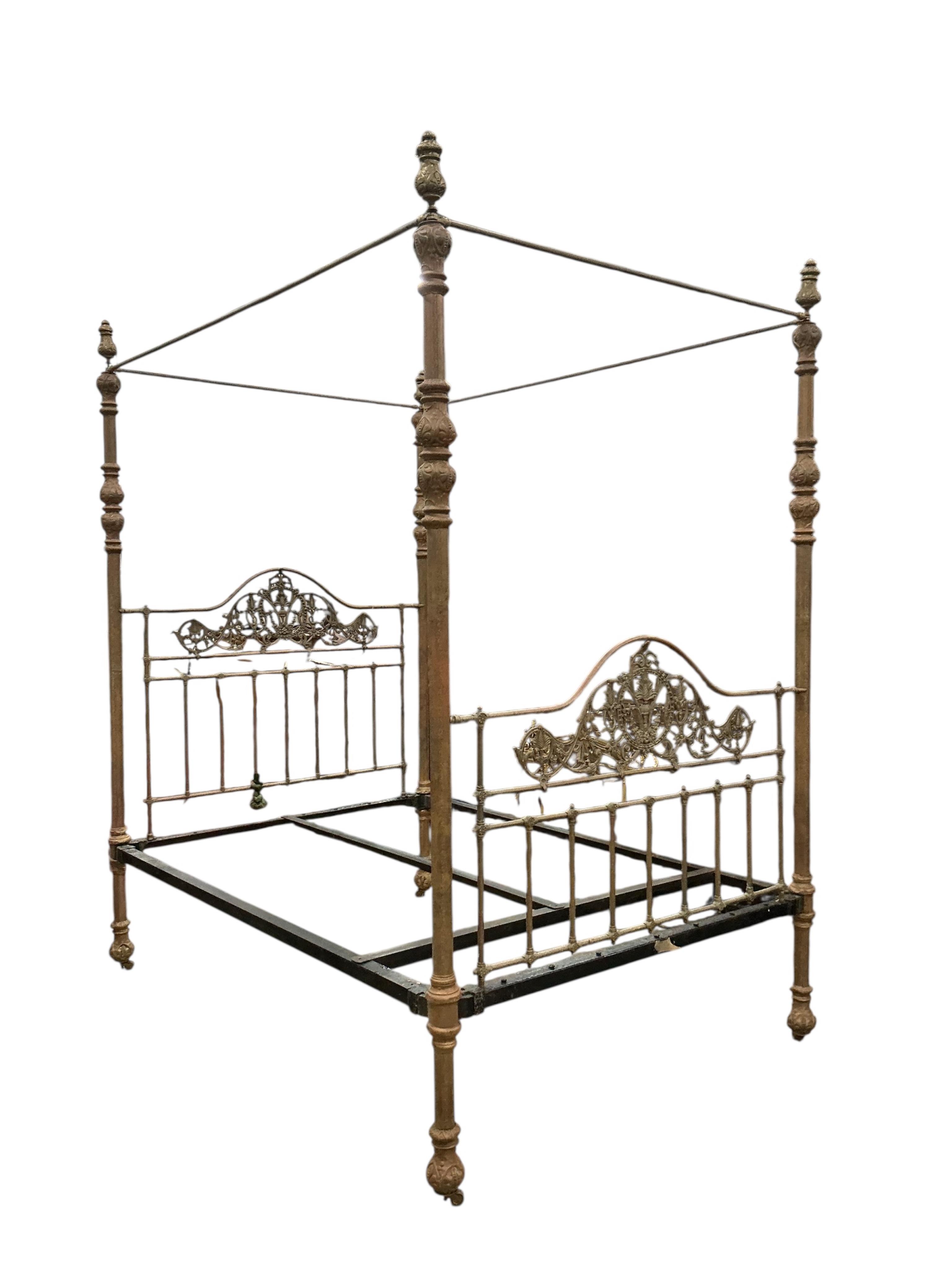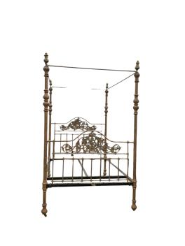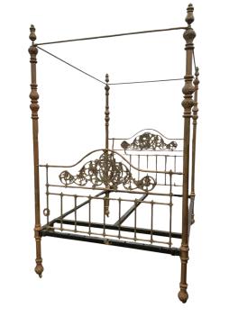 Lot 49 , A late 19th century Continental embossed brass four poster double bed frame, width 154cm, length 216cm, height 256cm