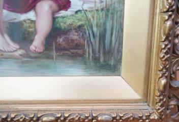 A late 19th century English porcelain plaque, finely painted with scantily clad nubile nymphs, relaxing by a woodland stream, signed, F.N. Sutton, 27 x 19cm