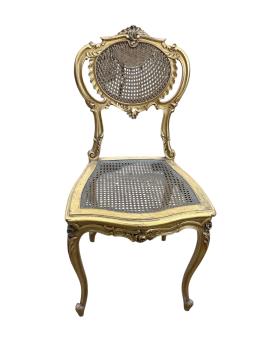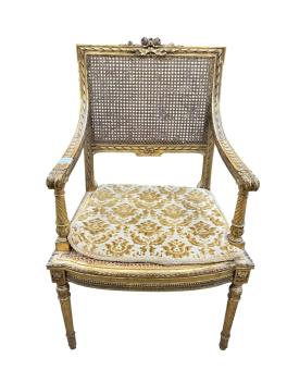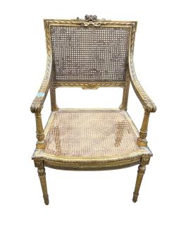 Lot 2062 , A late 19th century French Louis XVI style open elbow chair with cane seat, a matching side chair and another giltwood side chair