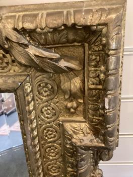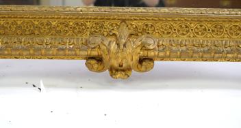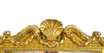 A late 19th century French carved gilt wood and composition overmantel mirror