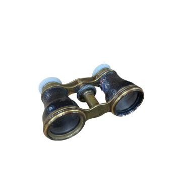 A late 19th century French enamelled gilt metal parasol handle inset oval porcelain portrait plaque, length 19cm, and two pairs of Victorian opera glasses.