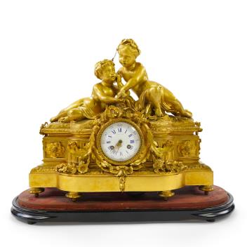 Lot 285 , A late 19th century French gilt bronze figural mantel clock