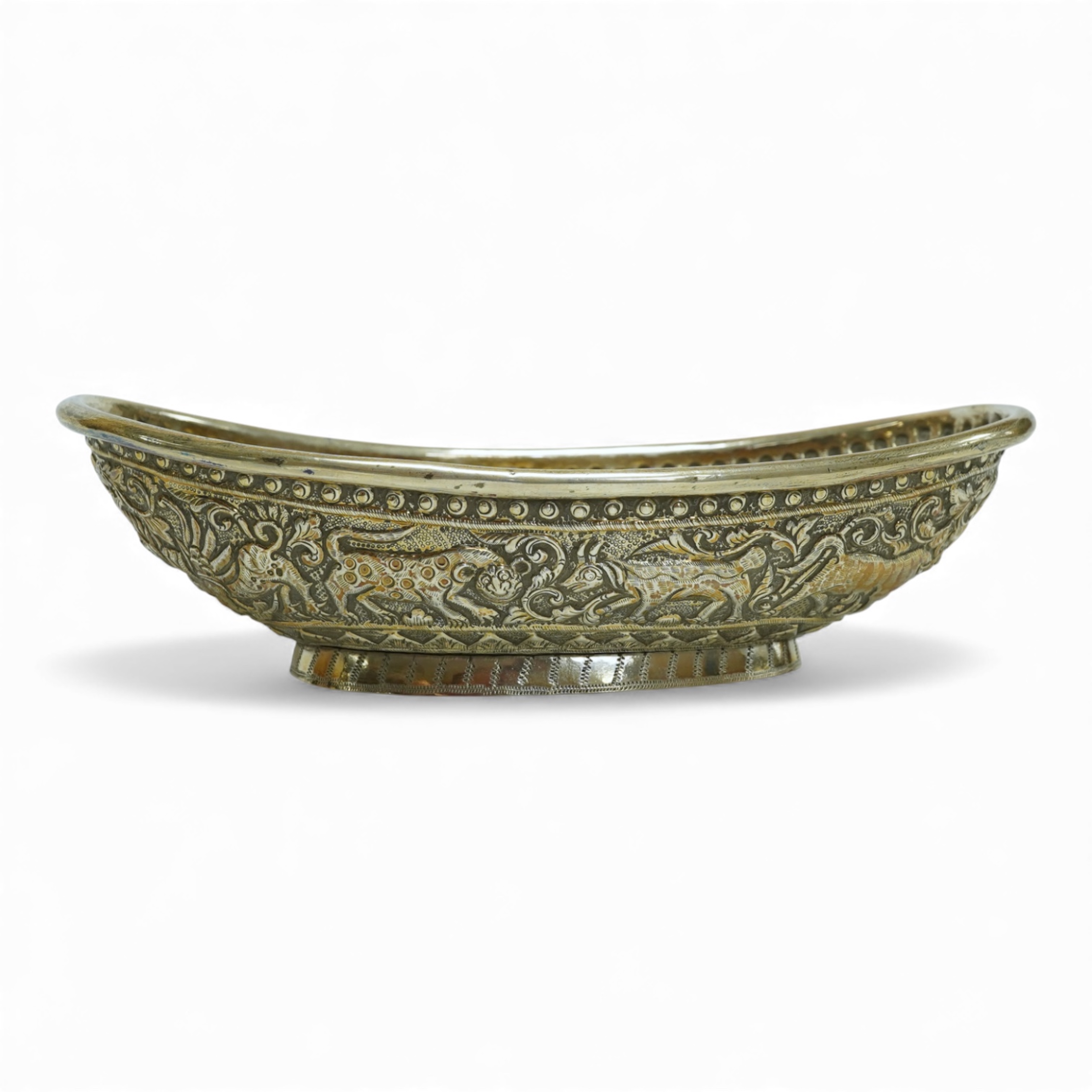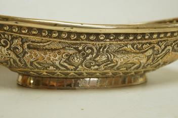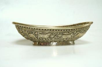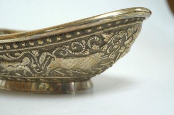 Lot 1843 , A late 19th century Indian white metal bowl, embossed with continuous scene of animals, 18.7cm, 4.9oz.