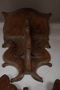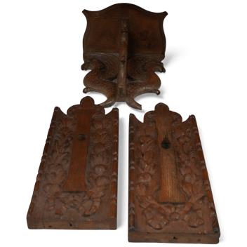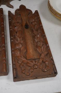 Lot 1338 , A late 19th century carved oak griffin wall bracket and a pair of carved oak wall light backplates, latter 41cm high