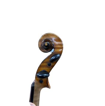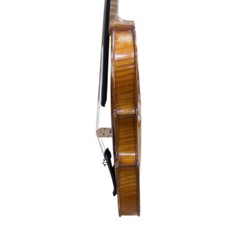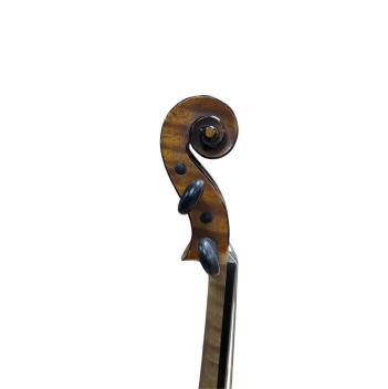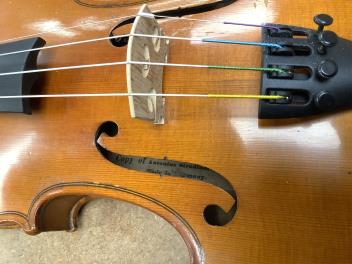 Label inside, “Copy of Antonius Stradiuarius, Made in Germany”. Light scratches; chips and rubs to both waists; tailpiece renewed. Case with many signs of wear.