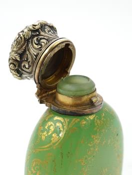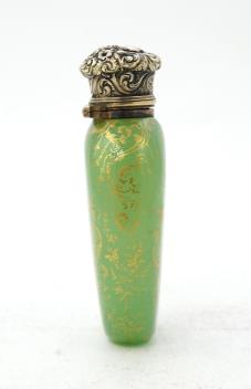 Lot 54 , A late 19th century gilt white metal mounted green opaline glass scent flask, by Sampson Mordan & Co