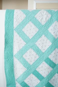 209cm x 214cm. Condition - the cottons and quilt are strong. Some light fading to the mint green cotton, acceptable for age and use. There are no stains or damage.