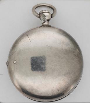 Small hole to the silver by the hinge on the outer case. Tiny fixing screw loose but present. Watch ticks when wound. Alarm not working, possibly piece or pieces missing? Not striking. In need of attention. Three hairline cracks and a star hairline crack to the dial. Numerous surface scratches to the glass. Numerous surface scratches to the cases.  'Wind Up' and 'Warning' engraved on the inner case a little tired.