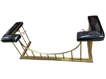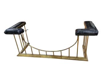 Lot 1084 , A late Victorian brass club fender, in need of re-upholstering, width 160cm, depth 60cm, height 59cm