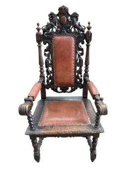 Lot 2097 , A late Victorian carved oak elbow chair, width 64cm, depth 62cm, height 136cm