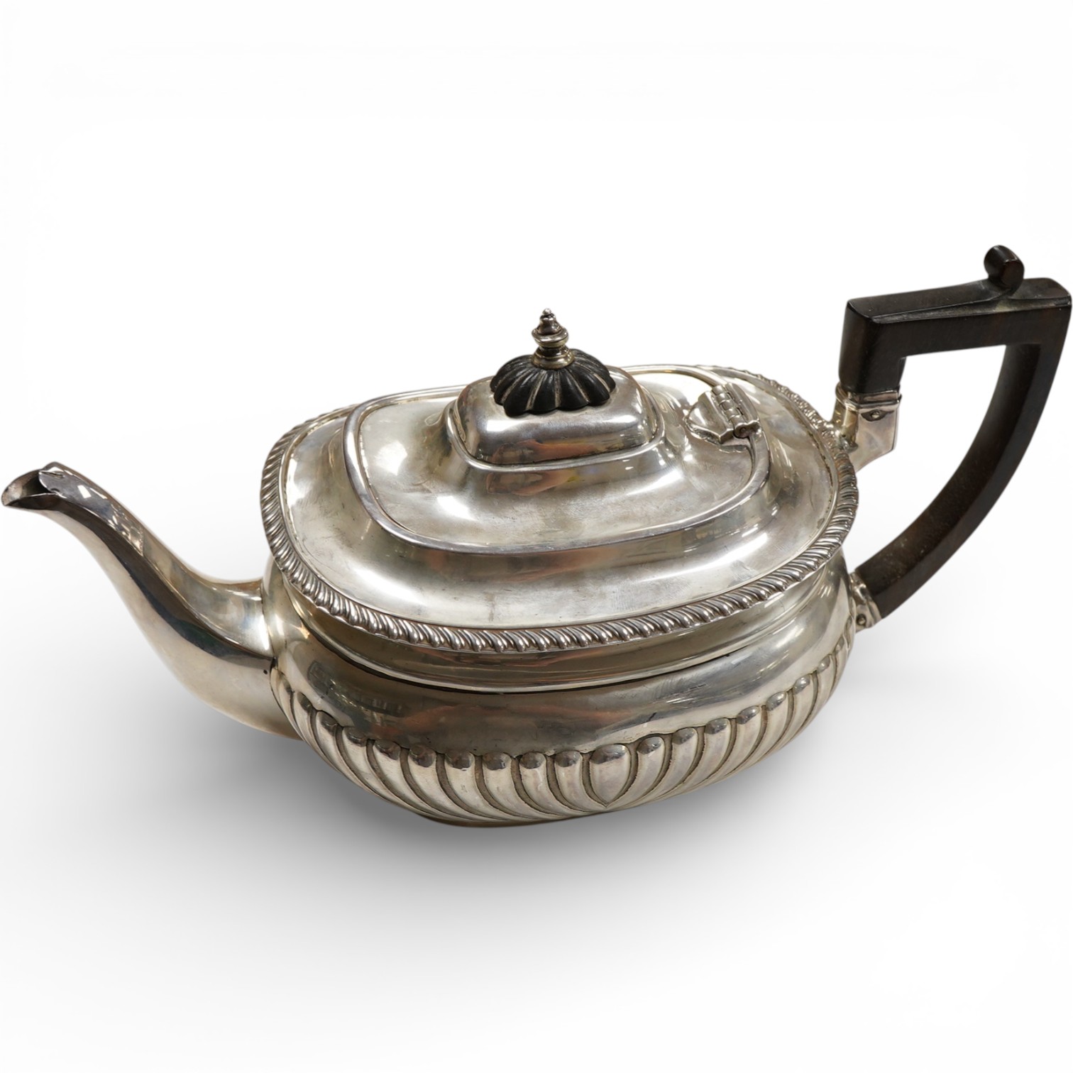 A late Victorian demi-fluted silver teapot, by Charles Boyton II, London, 1899, gross weight 21.8oz.