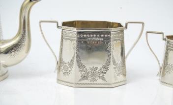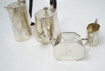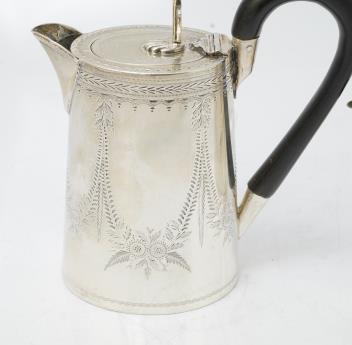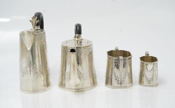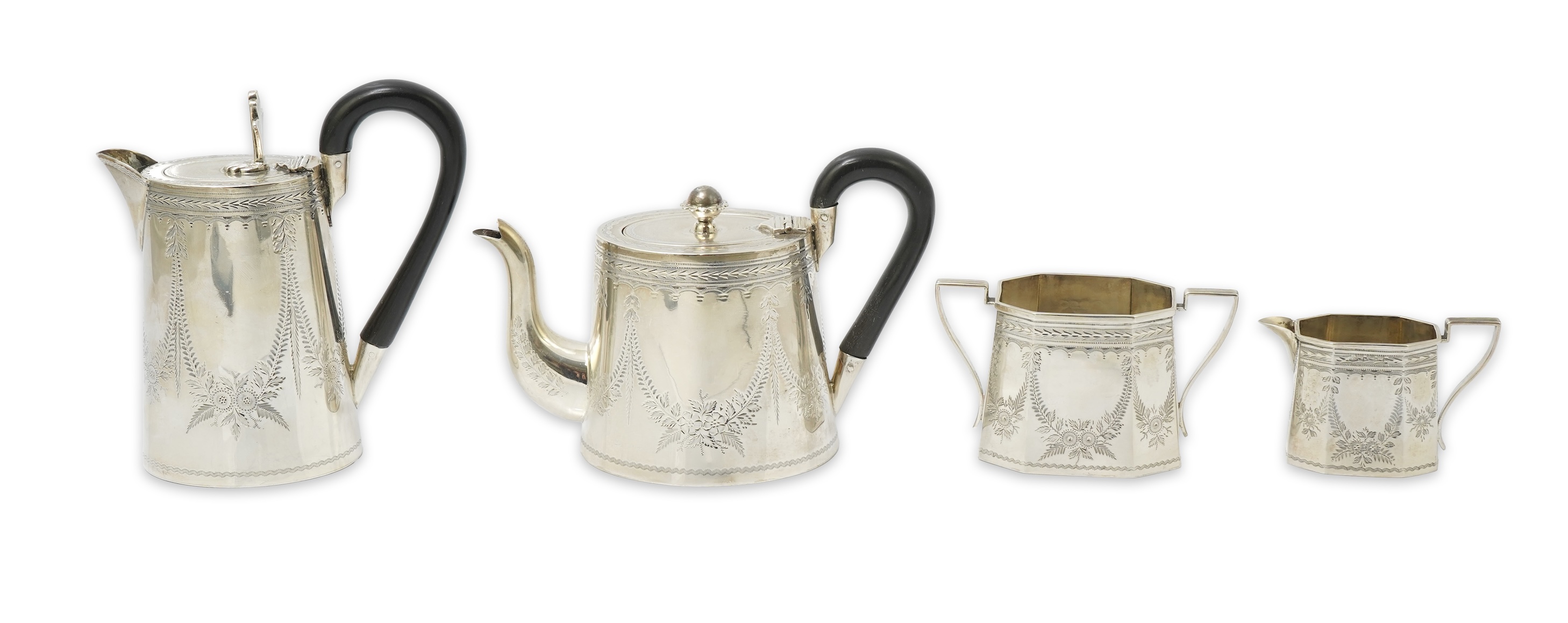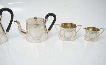 Lot 35 , A late Victorian engraved silver four piece bachelor's tea set, by William Devonport