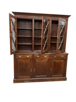 Lot 2018 , A late Victorian mahogany library bookcase with glazed upper section, width 184cm, depth 46cm, height 222cm