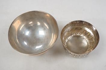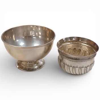 Lot 1828 , A late Victorian repousse silver bowl, London, 1885, diameter 91mm, together with a later silver bowl on a pedestal foot, London, 1907.