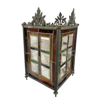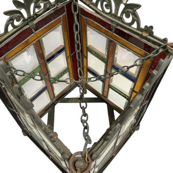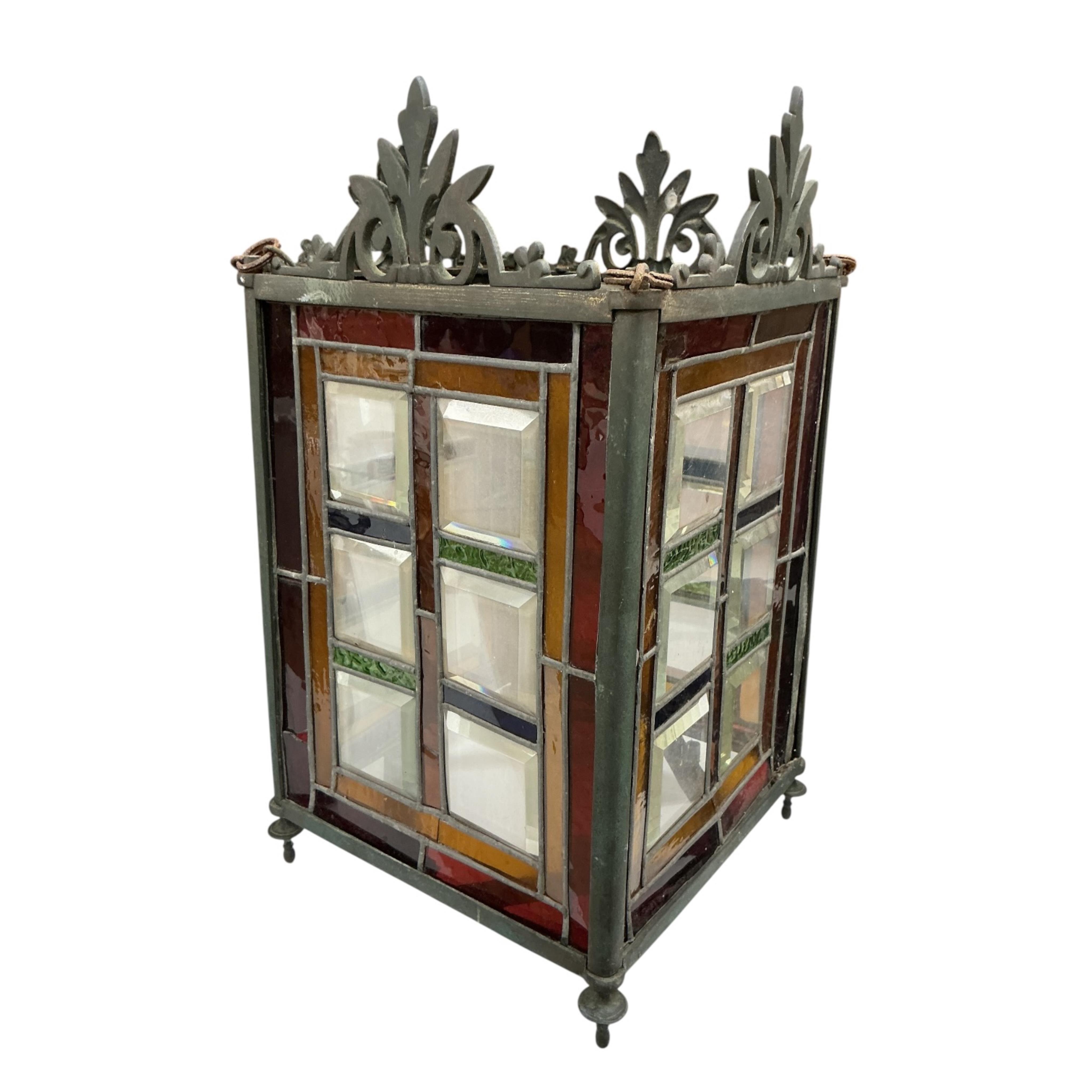 Lot 1497 , A late Victorian square stained glass hall lantern, 43cm high