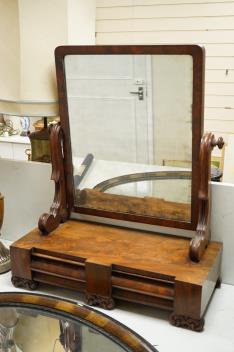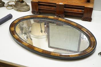 A mahogany toilet mirror and an oval wall mirror, 77cm wide