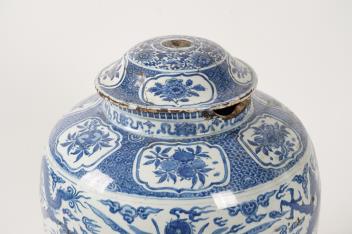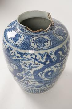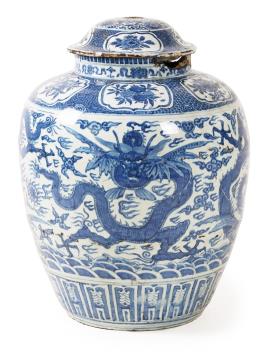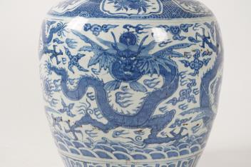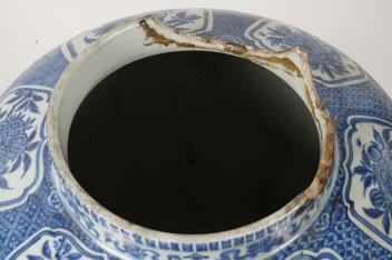 Lot 68 , A massive Chinese blue and white jar, Wanli six character mark and of the period (1572-1620)