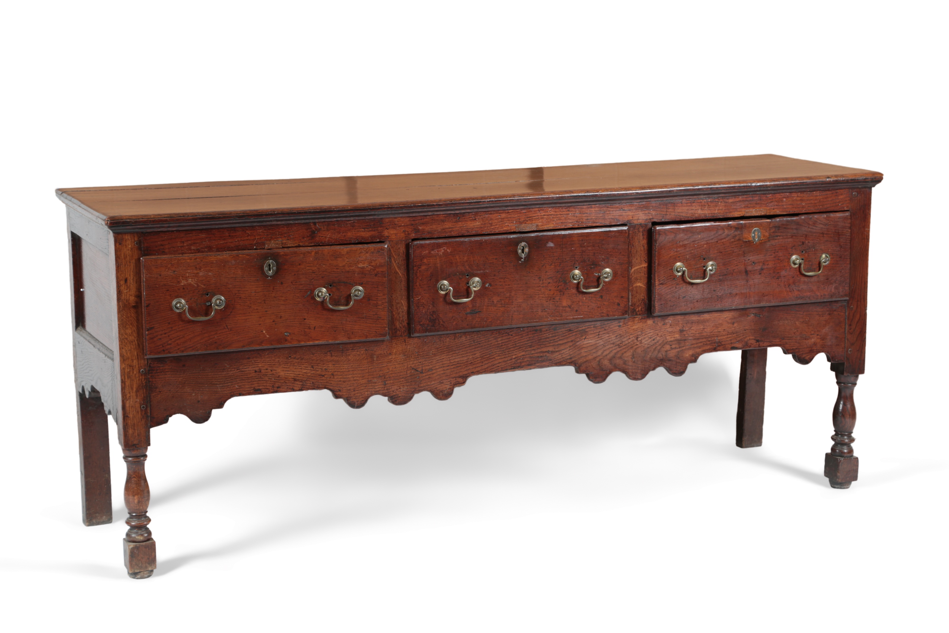 Lot 1311 , A mid 18th century oak dresser base, width 194cm, depth 51cm, height 81cm.
