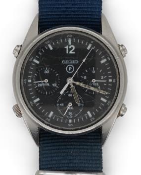 Lot 96 , A mid 1980's stainless steel Seiko RAF military issue Generation 1 quartz chronograph wrist watch