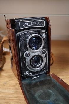 Lot 258 , A mid 20th century German Franke & Heidecke Rolleiflex twin lens reflex camera in its original fitted leather case