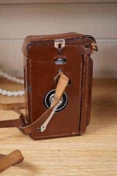 A mid 20th century German Franke & Heidecke Rolleiflex twin lens reflex camera in its original fitted leather case
