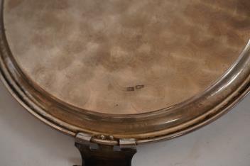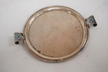 Lot 1004 , A mid 20th century Soviet Union 875 standard white metal and enamel two handled condiment tray, diameter 11.4cm, together with a similar 916 standard white metal and enamel salt with spoon and pepperette.