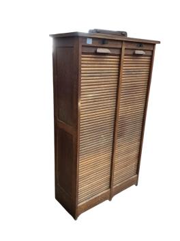 Lot 1033 , A mid 20th century oak double tambour filing cabinet, width 85cm, depth 37cm, height 144cm