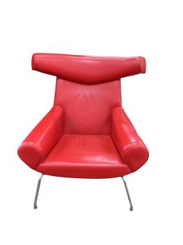 Lot 1047 , A mid century 'ox' style chair, width 98cm, depth 95cm, height 101cm and footstool