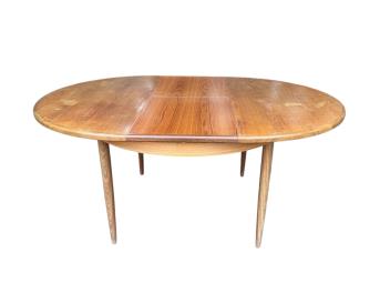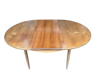Lot 1094 , A mid century G Plan Fresco teak extending dining table, diameter 160cm, height 74cm, and four chairs