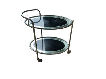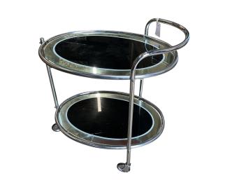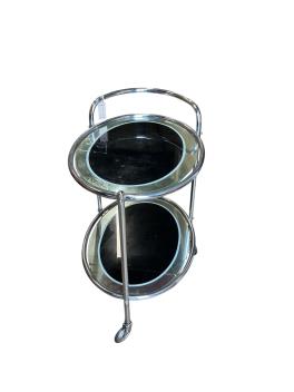 Lot 1322 , A mid century oval chrome and glass two tier tea trolley, width 70cm, depth 47cm, height 71cm