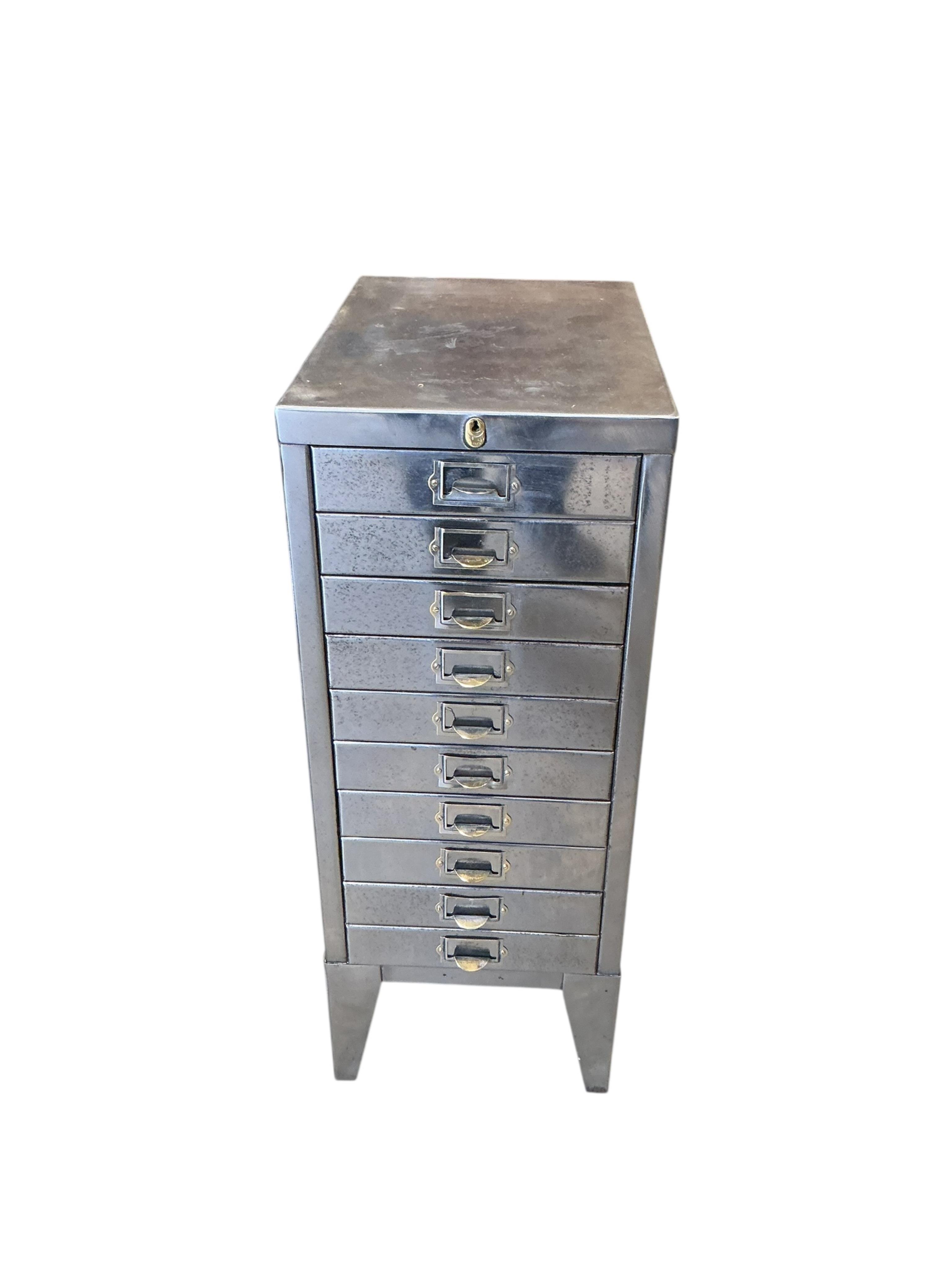 Lot 1318 , A mid century polished steel filing cabinet, width 29cm, depth 42cm, height 73cm