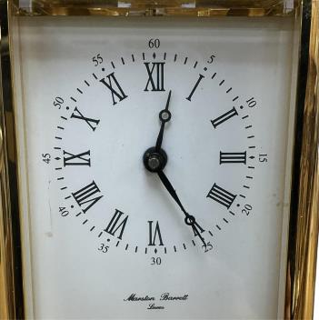 Lot 3554 , A modern cased lacquered brass carriage timepiece, retailed by Marston Barrett, Lewes, height 15cm.
