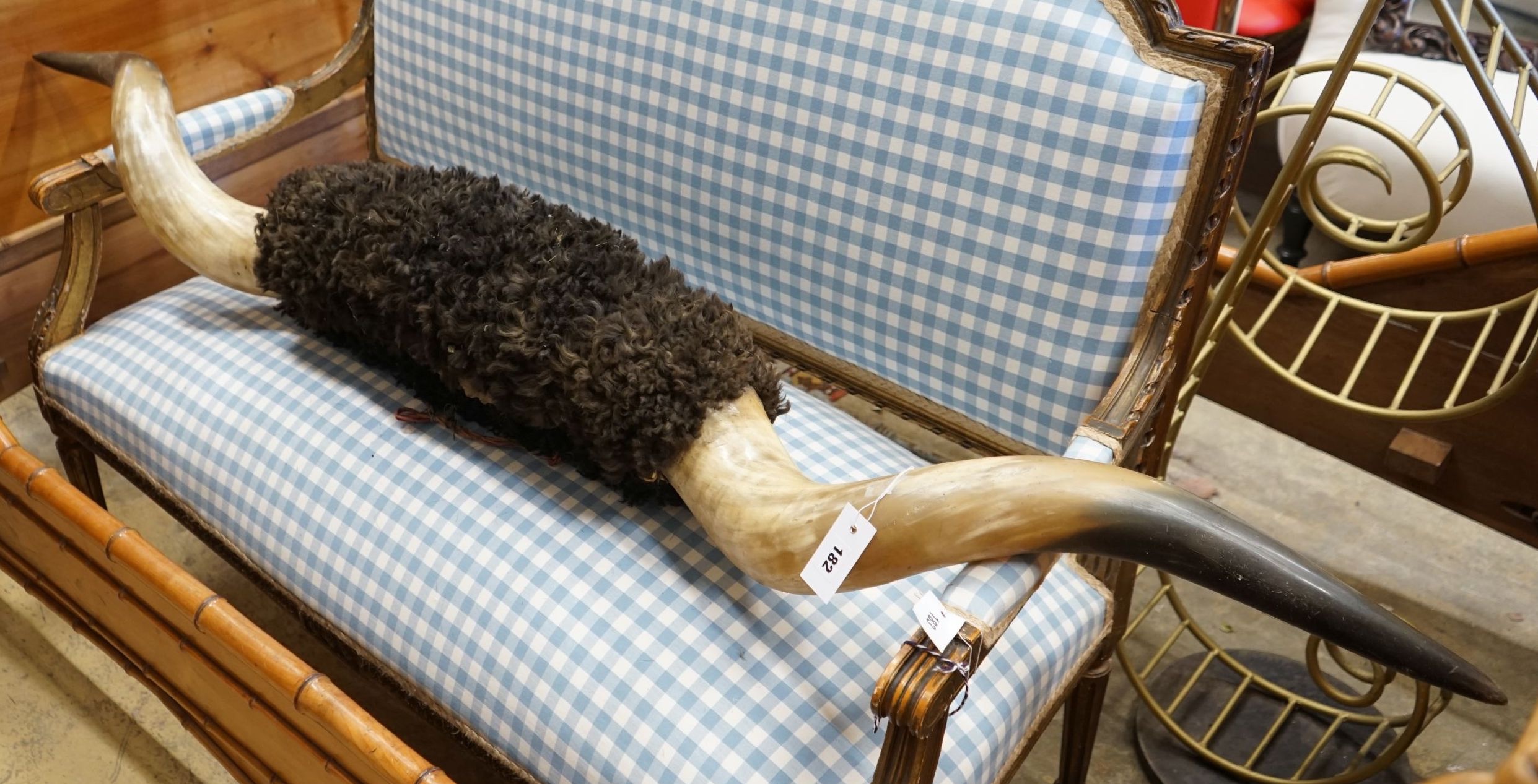 Lot 182 , A mounted pair of buffalo horns, width 192cm