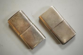 A near pair of George VI silver mounted lighters, each inscribed 'The Howitt Lighter', by Dudley Russell Howitt, Sheffield, 1946, (one engine turned), 58mm.