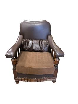 Lot 1082 , A near pair of early 20th century brown leather and fabric upholstery oak club armchairs, larger width 68cm, depth 70cm, height 74cm