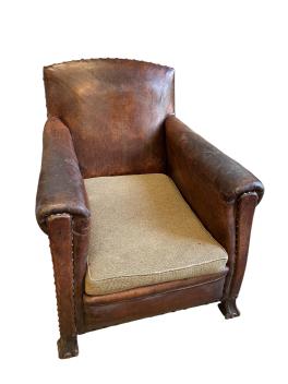 Lot 41 , A near pair of early 20th century studded brown leather club chairs, width 79cm, depth 86cm, height 89cm