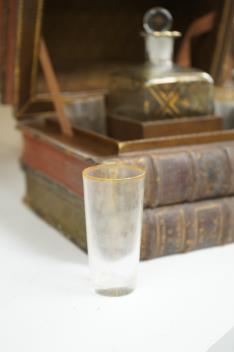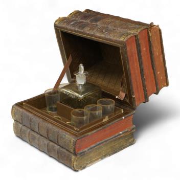 Lot 1498 , A novelty stack of books liqueur set, the contents including, decanter with stopper and five glasses, 26cm wide x 23cm high