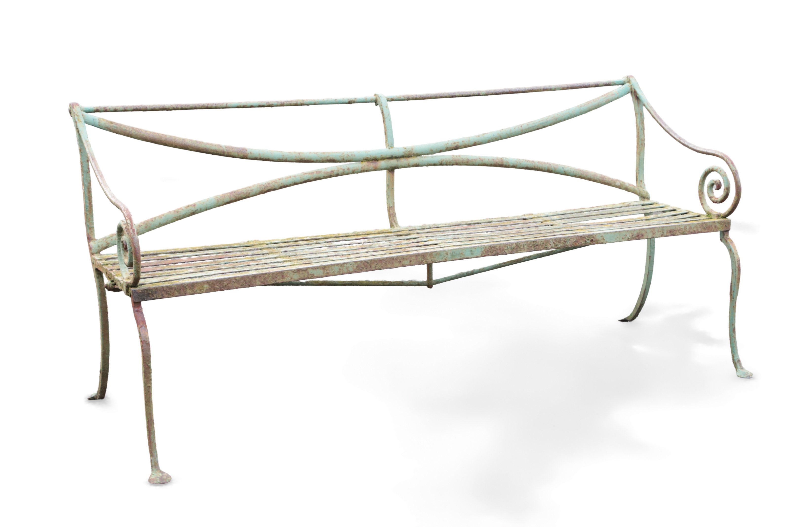A painted wrought iron garden bench, mid-19th century,
