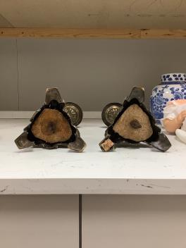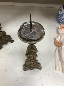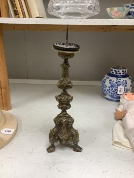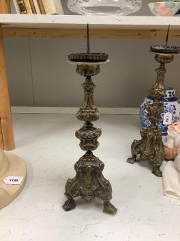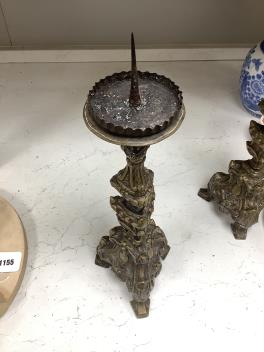 Lot 1154 , A pair of 17th century Italian embossed brass pricket candlesticks, overall 45cm high