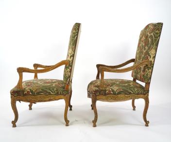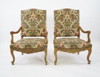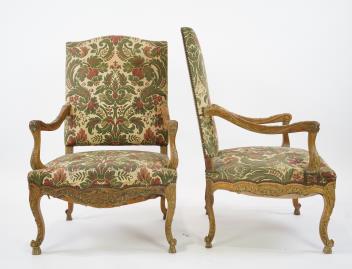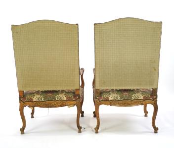 Lot 334 , A pair of 19th century Louis XV style carved walnut grand fauteuil
