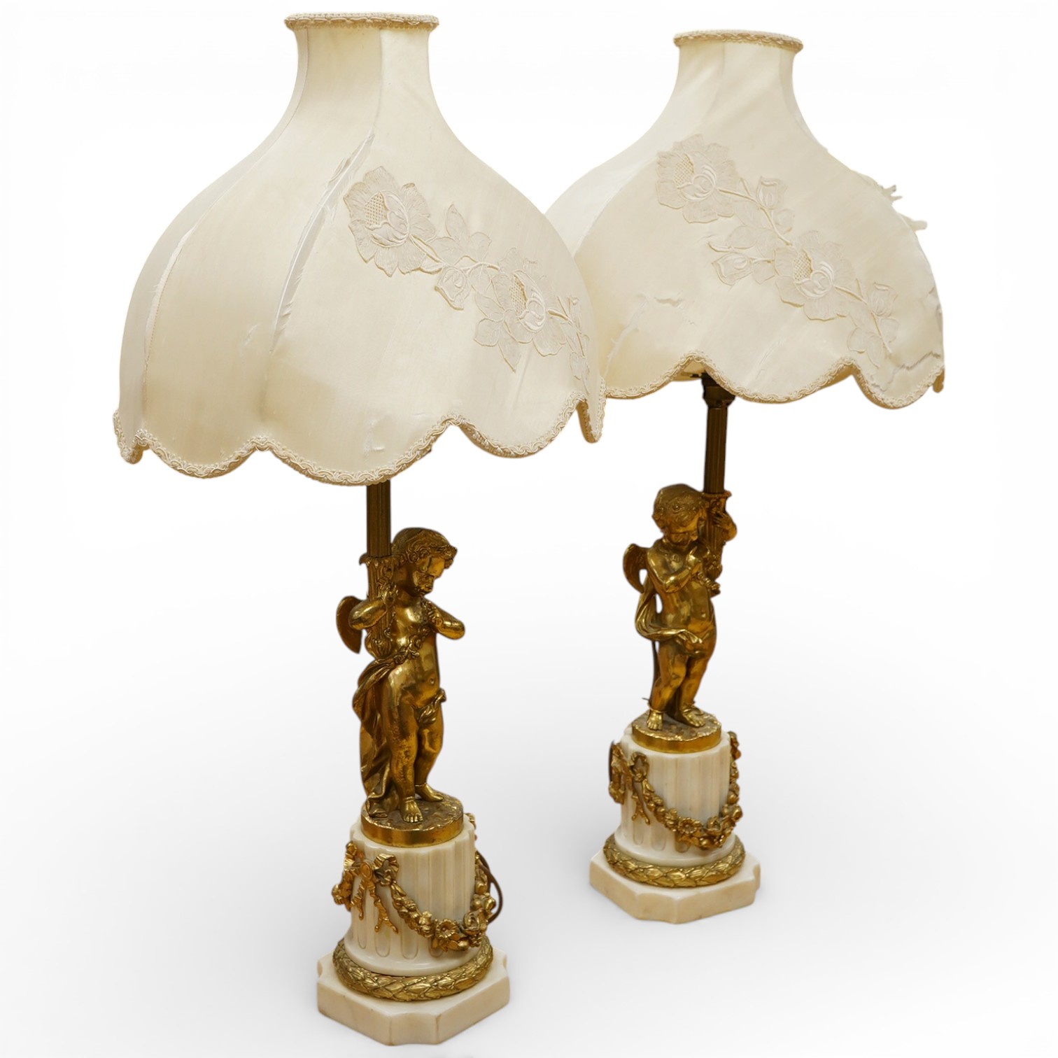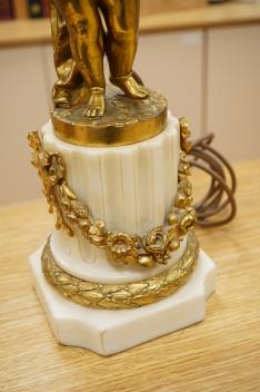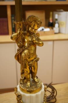 Lot 278 , A pair of 19th century gilt-brass cherub lamps with marble bases, 50cm high excluding shades