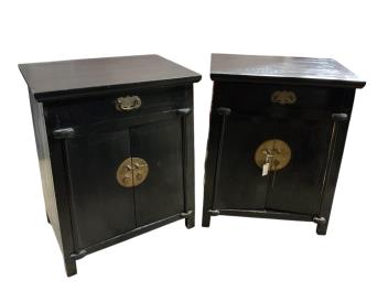 Lot 1098 , A pair of Chinese black lacquer side cabinets, width 68cm, depth 46cm, height 89cm