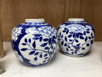 Lot 1383 , A pair of Chinese blue and white ginger jars and covers, height(s) 15cm.