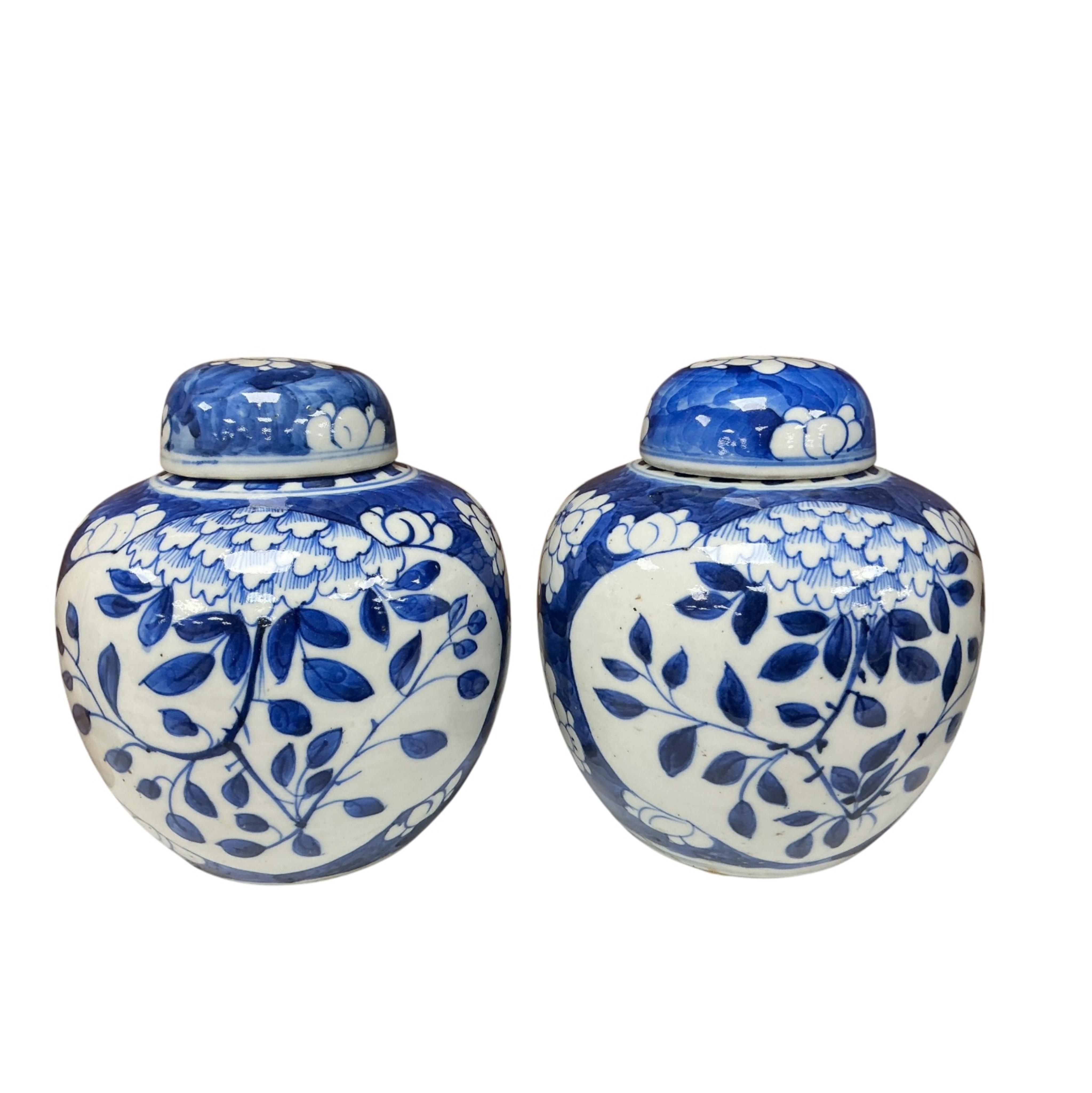 A pair of Chinese blue and white ginger jars and covers, height(s) 15cm.