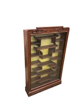 Lot 1104 , A pair of Chinese carved hardwood wall display cabinets, width 43cm, depth 10cm, height 71cm
