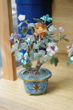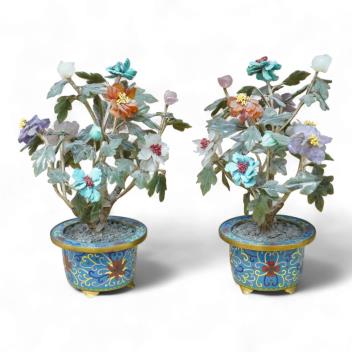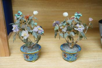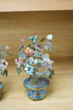 Lot 420 , A pair of Chinese hardstone trees, in cloisonne jardinieres, 23cm high