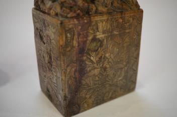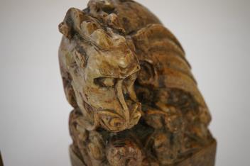Lot 7 , A pair of Chinese soapstone 'dragon' seals, height 19cm