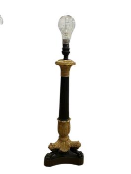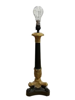 Lot 1211 , A pair of Empire style ormolu and patinated bronze column table lamps with paw feet, 47cm high including fitting