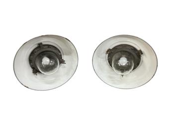 Lot 1056 , A pair of GEC grey enamel pendant ceiling lights, diameter 45cm, height 46cm